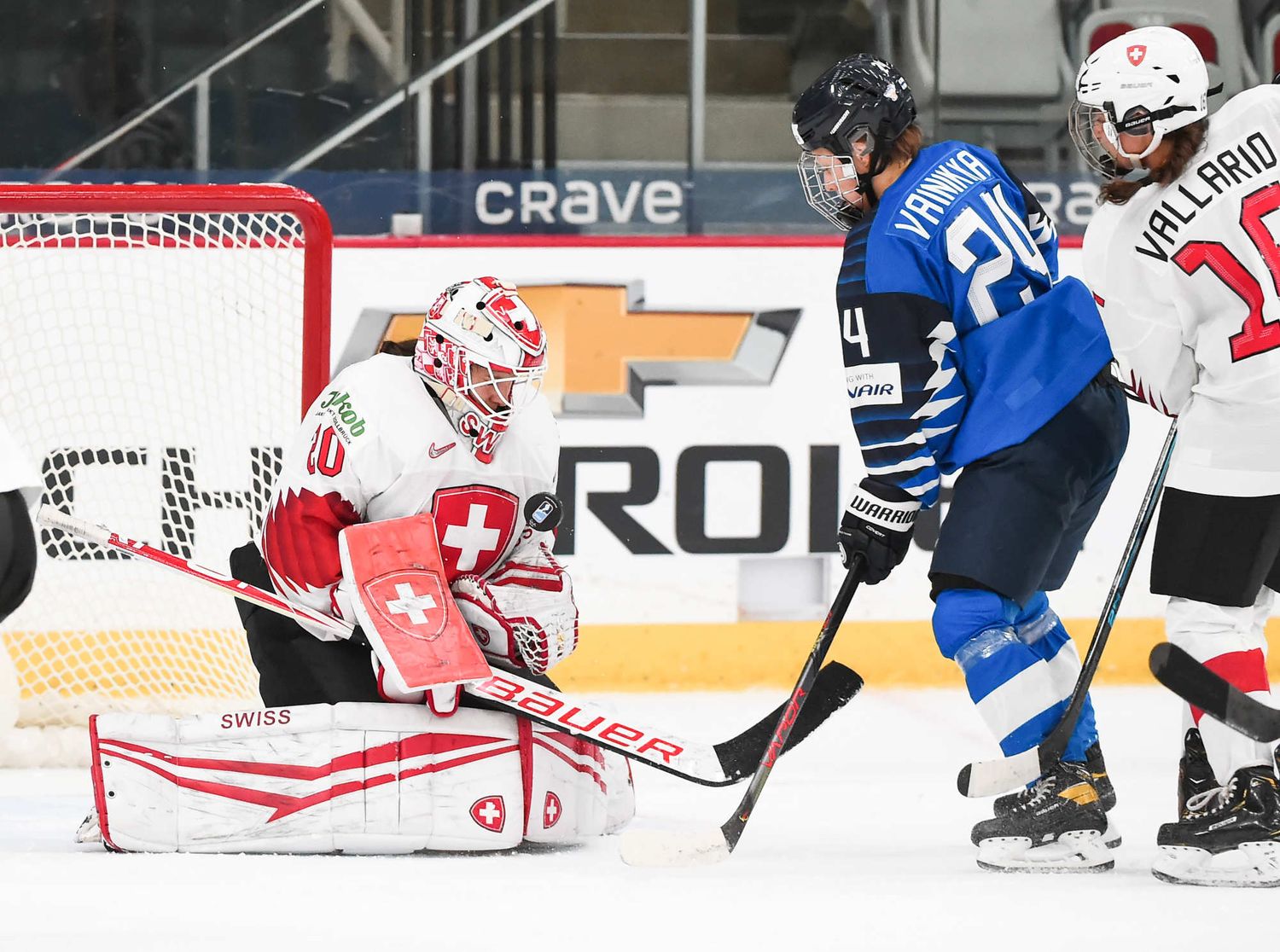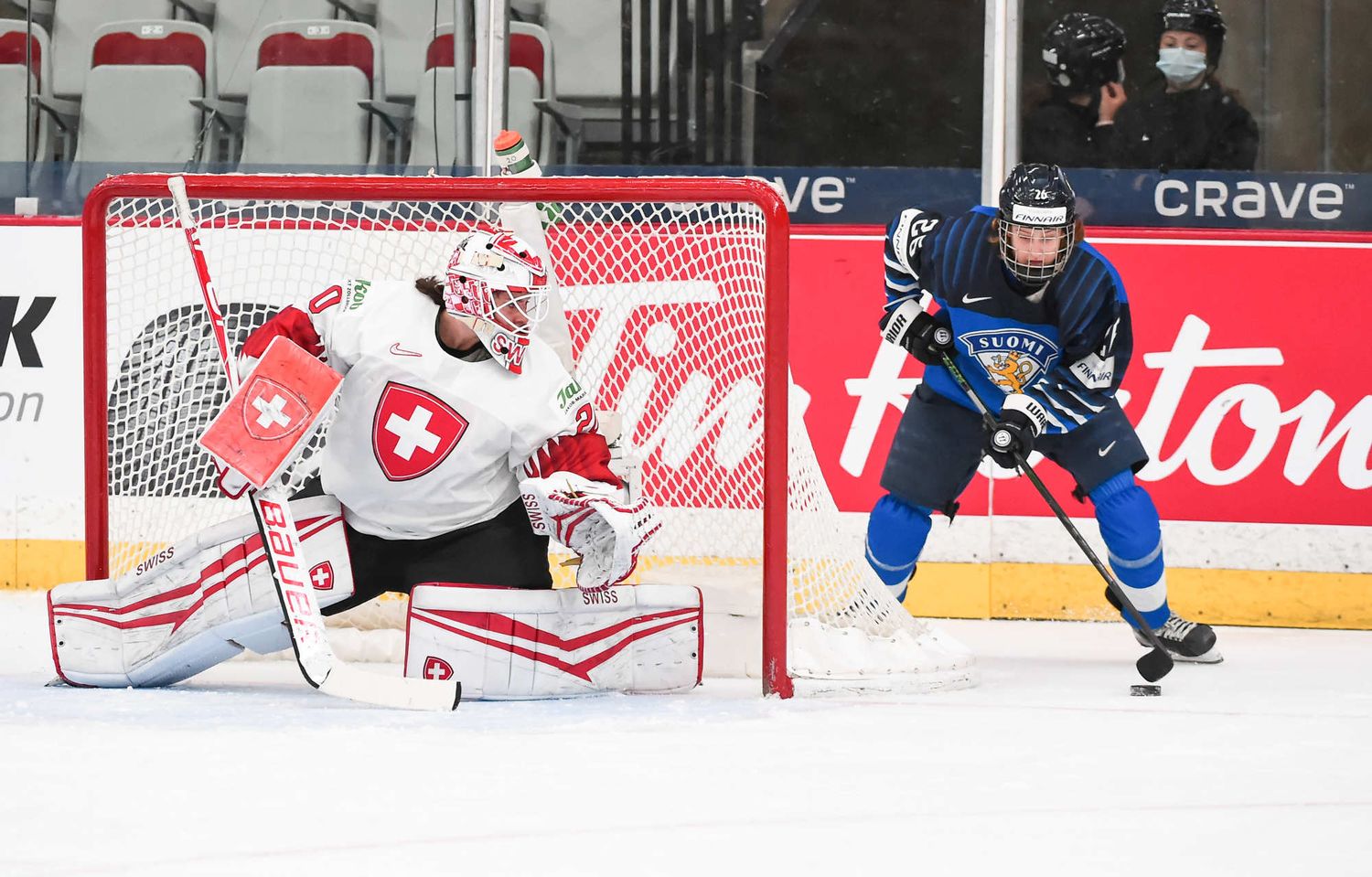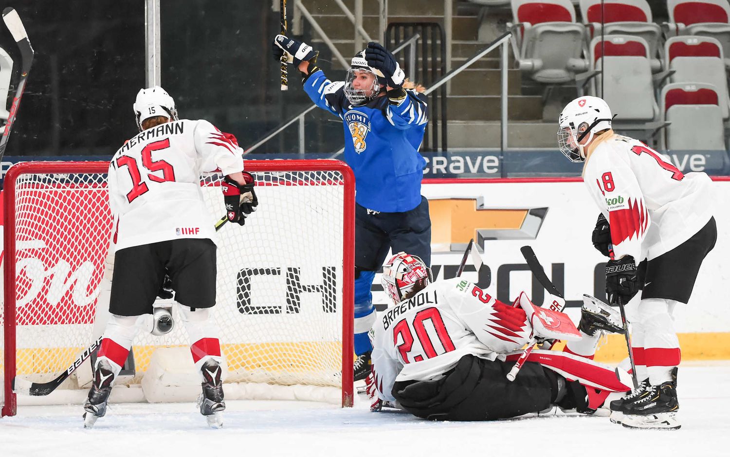 Raisanen, qui avait réalisé 36 arrêts à sa sortie précédente contre les États-Unis, s'est illustrée quand Sinja Leeman a soutenu une poussée à l'attaque et a redirigé une rondelle que Noemi Rhyner lui a relayée. Les Suisses ont eu quelques belles occasions d'éviter le jeu blanc, mais elles ont manqué de finition.
